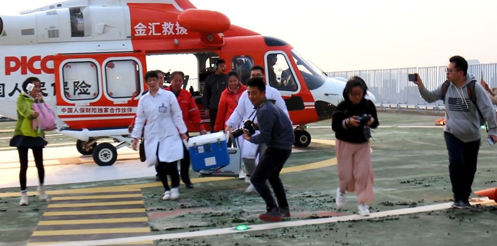 經(jīng)過50分鐘的飛行,上午7點(diǎn)左右直升機(jī)降落在目的地直升機(jī)停機(jī)坪上,醫(yī)生將捐獻(xiàn)器官快速送往手術(shù)室內(nèi)為患者進(jìn)行器官移植手術(shù)。